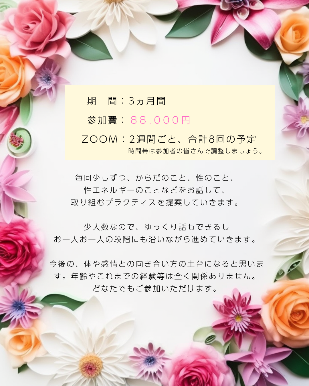 膣に、自分の性に向き合うことですが、ある意味で全方位的になると思います。自分の内面との繋がりを育むプラクティスでもあります。